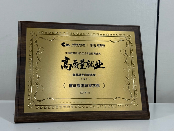 为深入贯彻党中央、国务院关于促进高校毕业生等青年就业创业的决策部署,落实《人力资源社会保障部 教育部 财政部关于做好2025年高校毕业生等青年就业工作的通知》等最新政策精神,挖掘和推广就业工作典型。中国教育在线·就业桥举办了“高质量就业”2025年度教育盛典活动,表彰高校就业工作数智化转型,创新实践的优秀案例,对推动高校就业跨越式发展,汇聚创新动力的榜样单位进行推广。重庆旅游职业学院荣获“2025高质量就业·智慧就业创新高校”荣誉称号。