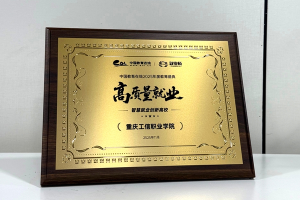 为深入贯彻党中央、国务院关于促进高校毕业生等青年就业创业的决策部署,落实《人力资源社会保障部 教育部 财政部关于做好2025年高校毕业生等青年就业工作的通知》等最新政策精神,挖掘和推广就业工作典型。中国教育在线·就业桥举办了“高质量就业”2025年度教育盛典活动,表彰高校就业工作数智化转型,创新实践的优秀案例,对推动高校就业跨越式发展,汇聚创新动力的榜样单位进行推广。重庆工信职业学院荣获“2025高质量就业·智慧就业创新高校”荣誉称号。
