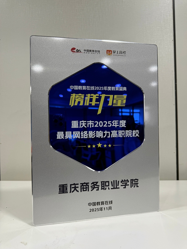 近日,中国教育在线“榜样力量·2025年度教育盛典”优秀案例名单公布。重庆商务职业学院凭借极具创新性与前瞻性的招生宣传策略,以及扎实过硬的宣传执行实力,从众多高校中突围,获评“2025年度最具网络影响力高职院校”。