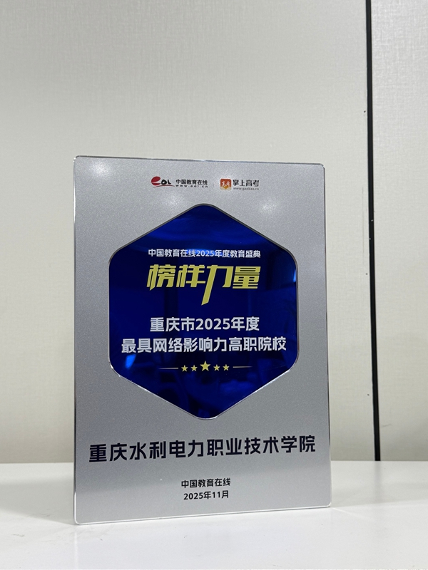 近日,中国教育在线“榜样力量·2025年度教育盛典”优秀案例名单公布。重庆水利电力职业技术学院凭借极具创新性与前瞻性的招生宣传策略,以及扎实过硬的宣传执行实力,从众多高校中突围,获评“2025年度最具网络影响力高职院校”。