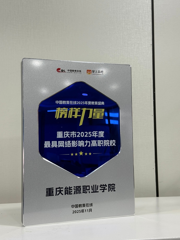 近日,中国教育在线“榜样力量·2025年度教育盛典”优秀案例名单公布。重庆能源职业学院凭借极具创新性与前瞻性的招生宣传策略,以及扎实过硬的宣传执行实力,从众多高校中突围,获评“2025年度最具网络影响力高职院校”。