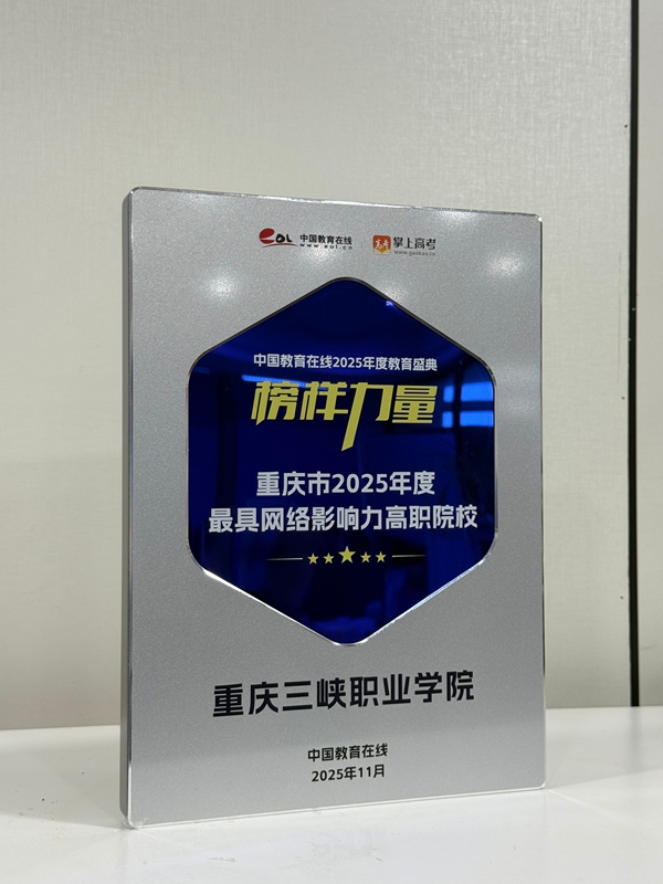 近日,中国教育在线“榜样力量·2025年度教育盛典”优秀案例名单公布。重庆三峡职业学院凭借极具创新性与前瞻性的招生宣传策略,以及扎实过硬的宣传执行实力,从众多高校中突围,获评“2025年度最具网络影响力高职院校”。