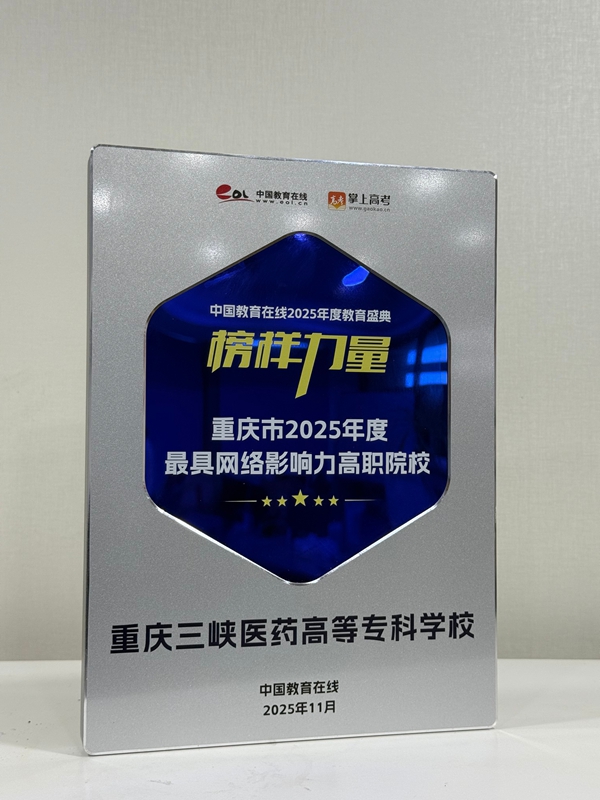 近日,中国教育在线“榜样力量·2025年度教育盛典”优秀案例名单公布。重庆三峡医药高等专科学校凭借极具创新性与前瞻性的招生宣传策略,以及扎实过硬的宣传执行实力,从众多高校中突围,获评“2025年度最具网络影响力高职院校”。