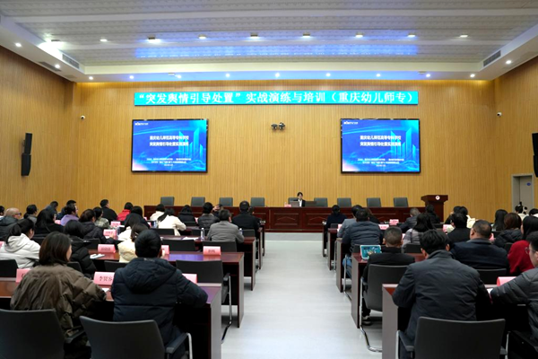 为深入贯彻习近平文化思想和习近平总书记关于网络强国的重要思想,积极适应教育领域网络舆情面临的新形势新要求,进一步提升学校网络舆情应急处置效能与网络舆论引导水平,强化突发事件应对能力,12月16日,重庆幼儿师范高等专科学校在行政楼112会议室举办突发舆情引导处置实战演练与培训。学校党委书记马文华,党委委员、副书记张勇刚出席指导,各二级单位党政负责人、意识形态员、辅导员代表、学生代表参加。