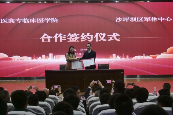 作为全国唯一一所为部队定向培养临床医学专业军士生的医药卫生院校,重庆医药高等专科学校临床医学院自2015年起即肩负为武警和陆军定向培养卫生军士的重任。12月19日,重庆医药高等专科学校临床医学院与沙坪坝区军队离休退休干部服务管理中心举行了意义重大的合作签约仪式暨红色宣讲活动。此次携手,标志着双方将共同搭建高标准的军士生思想政治教育与社会实践平台,以校院协同育人新理念,全面深化“红医苗”培育工程。