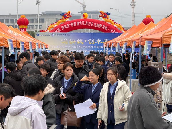 12月25日,“渝快就·创未来”——教育强市区县行专场招聘活动(大足专场)暨高校毕业生等青年留渝来渝就业创业对接服务活动在重庆电信职业学院精诚广场举办。