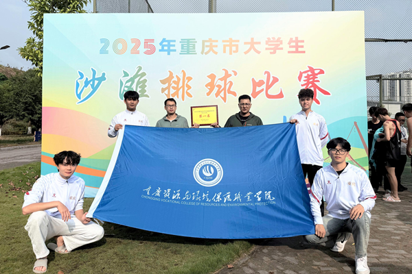 “再来一次!一传到位!”当裁判吹响终哨,2025年重庆市大学生排球比赛男子乙组决赛现场沸腾不已——重庆资源与环境保护职业学院建校以来首个省级球类赛事冠军到手。