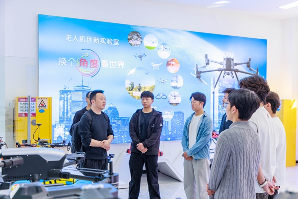 理论扎根,实践赋能。讲座后,何涛走进实训场地,化身“实操导师”,围绕无人机组装调试、故障排查、规范巡检等核心技能开展沉浸式指导。“飞行不稳,关键在零件组装精度。”他俯身拆解设备,手把手纠正操作,将行业前沿经验与创新思路倾囊相授。师生们围拢请教、认真实操,在指尖实践中深化理解,让产教融合的育人实效落地生根。