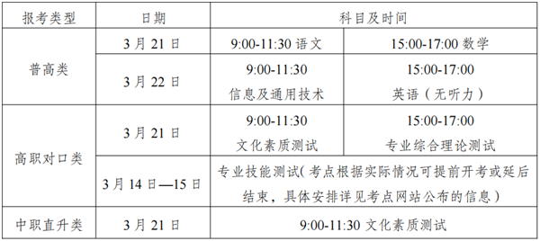 1.高职对口类专业技能测试具体时间及相关安排以考点官网公布为准,请考生于3月9日起在考点官网自行打印专业技能测试准考证,凭准考证、身份证参加测试。