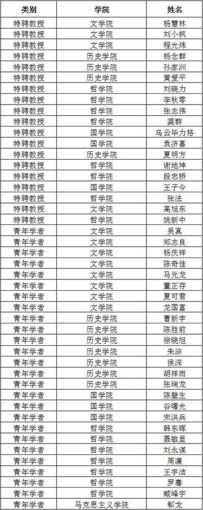 为支持文、史、哲等人文学科发展,汇聚一批一流学术人才,涵育大学精神和人文底蕴,中国人民大学自2015年开始研究实施杰出人文学者聘任计划。首批聘任19位杰出人文学者特聘教授,聘任26位杰出人文学者青年学者,共计45位。