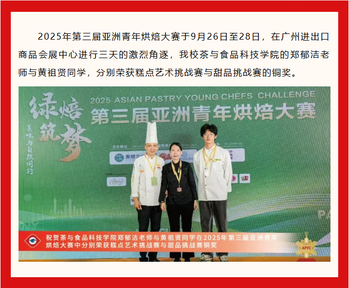 祝贺!太棒了,看漳科师生摘得亚洲青年烘焙大赛双奖