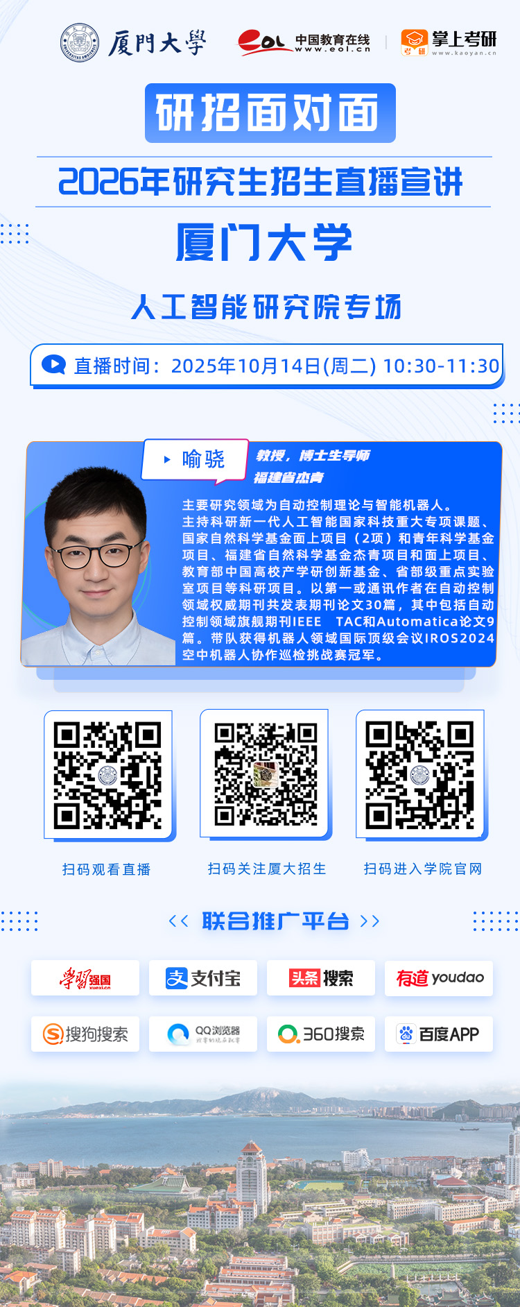 直播预告|10月14日,2026年厦门大学·人工智能研究院研究生招生直播咨询会开讲
