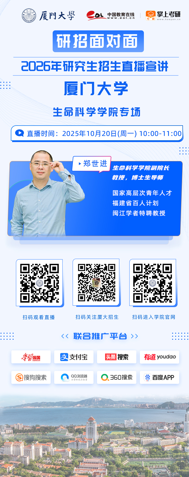 直播预告|10月20日,2026年厦门大学·生命科学学院研究生招生直播咨询会开讲