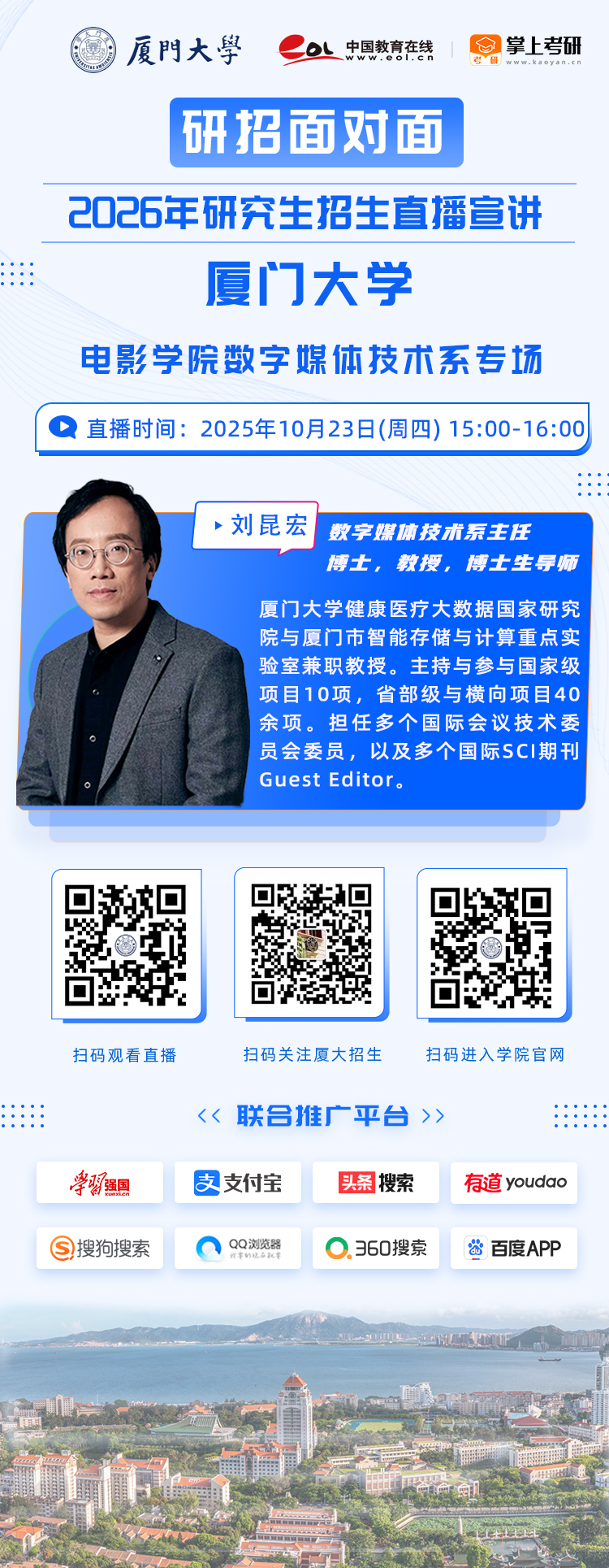 直播预告|10月23日,2026年厦门大学·电影学院数字媒体技术系研究生招生直播咨询会开讲