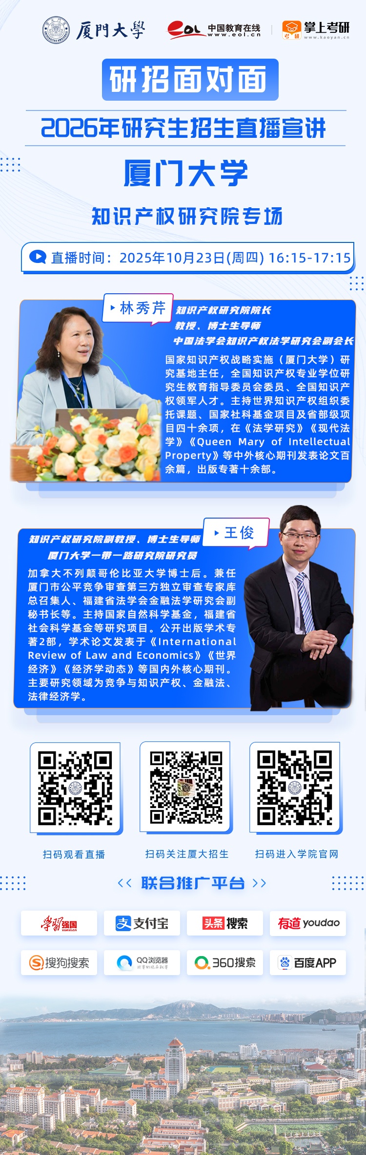 直播预告|10月23日,2026年厦门大学·知识产权研究院研究生招生直播咨询会开讲