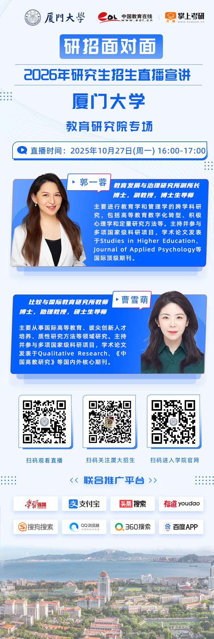 直播预告|10月27日,2026年厦门大学·教育研究院研究生招生直播咨询会开讲