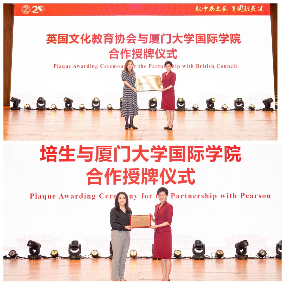 会上,英国文化教育协会中国考试业务拓展主管李轶聪、培生集团亚洲区数字销售及运营负责人唐倩婷分别代表雅思和培生教育集团,与学院完成合作授牌。校友捐赠仪式随后举行。