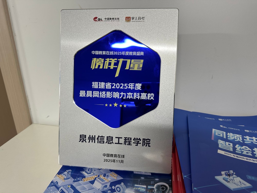 近日,中国教育在线“榜样力量·2025年度教育盛典”优秀案例名单公布。泉州信息工程学院凭借极具创新性与前瞻性的招生宣传策略,以及扎实过硬的宣传执行实力,从众多高校中突围,获评“2025年度最具网络影响力本科高校”。