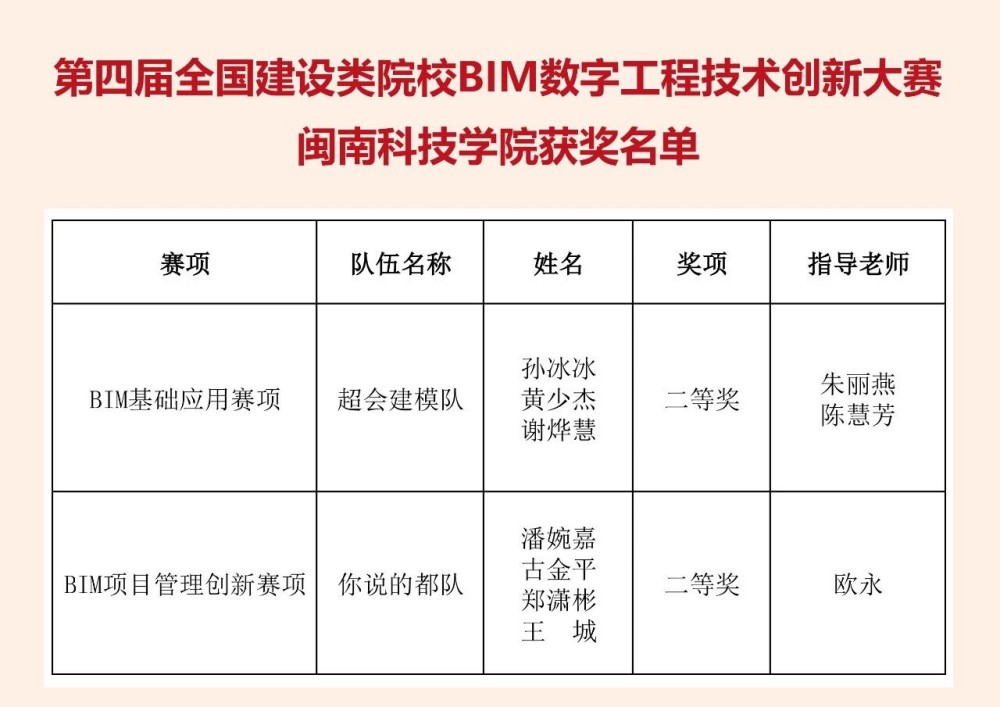 2项全国二等奖 | 闽南科技学院学子在第四届全国建设类院校BIM数字工程技术创新大赛获奖