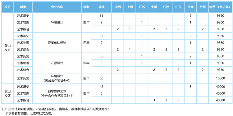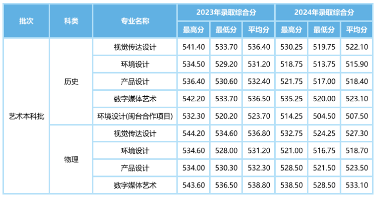 艺术类(美术)各专业在福建省录取分数