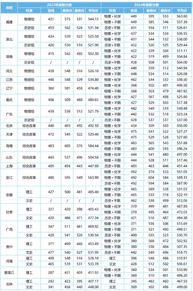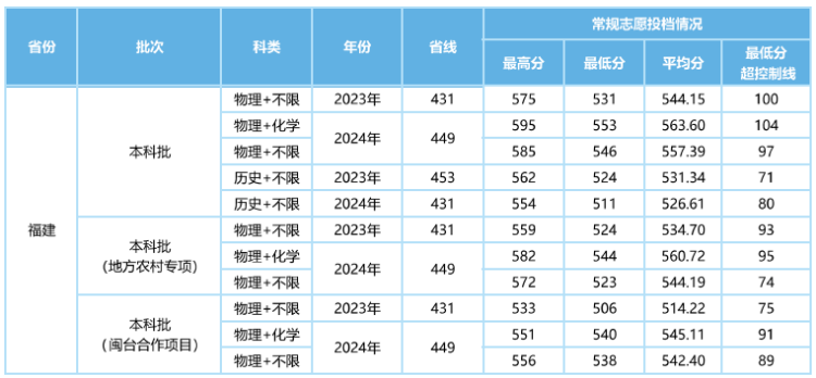 福建省本科批招生录取分数
