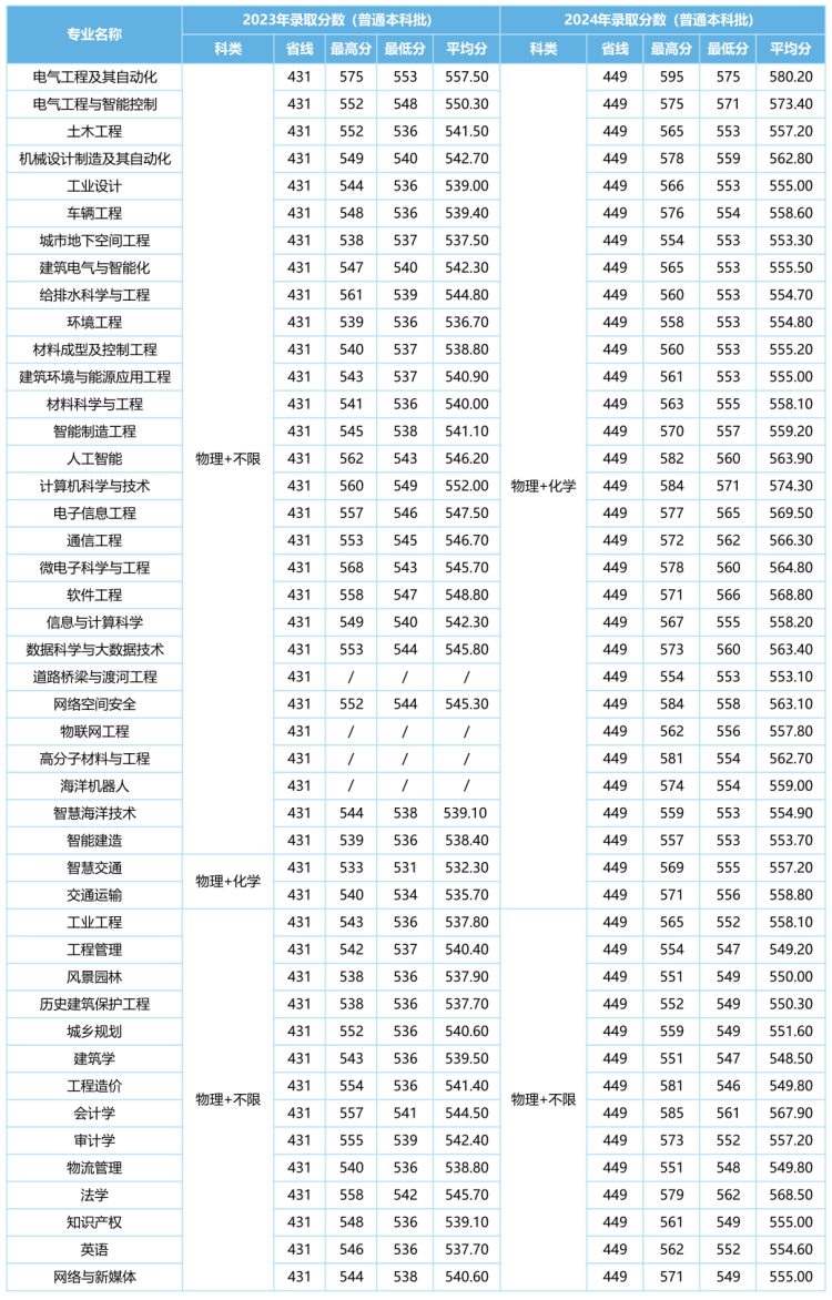 2023-2024年各专业在