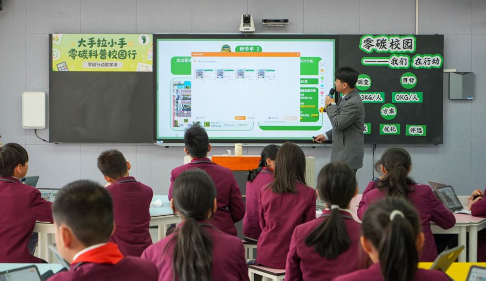 教育传递是绿色理念扎根的关键。实践队员走进了福建师范大学东侨实验小学,深入课堂开展志愿服务。队员协助教师进行“能源转化绿色课堂”与“零碳行动数学课堂”的教学,通过“水杯吹气”趣味实验、碳排放数据互动分析等形式,与小学生们共同探索低碳科学的奥秘,在轻松氛围中播种环保意识的种子。此外,队员还与该校教师团队座谈,深入了解学校“零碳进校园”校本课程实施方案及由宁德时代开发的“零碳”特色校本课程建设情况,交流如何更有效地在青少年中开展低碳教育。