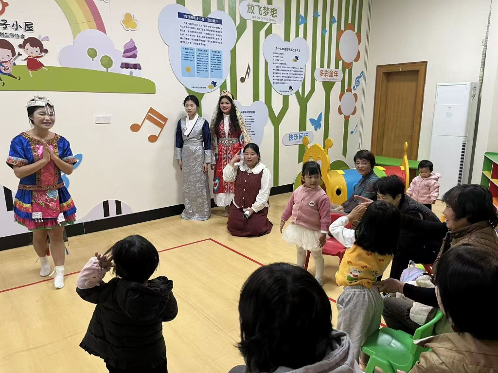 教育民生学院“民族团结一家福‘子’‘童’心向未来”多场景幼儿民族文化启蒙实践队,将民族元素有机融入专业知识体系,创新打造了一系列特色鲜明的民族文化课堂。