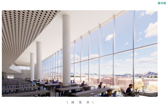设计理念源自中国文人素有游历山川,在自然中探求境界提升的传统,设计以“学者之山”为主题,以甘肃的特色地貌为灵感,呈现富有雕塑感的山石般的体量。建筑中部设置360°全景阅读层,纯净通透,意喻通过学习开璞见玉,挖掘潜力、提升价值。
