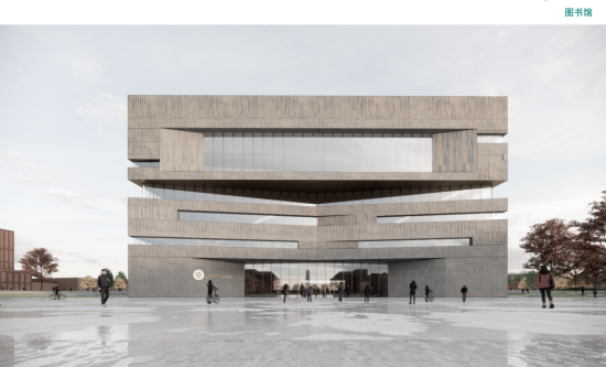 图书馆是兰州信息科技学院展示先进教育理念和严谨学术精神的空间载体。地上6层,建筑面积27772.68㎡。设计秉持建立门户形象,在校园中心打造地标建筑,将成为学校的文化客厅,为师生提供社区感。