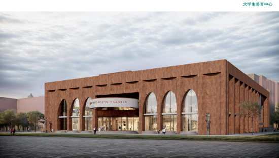 美育中心地上1层,地下局部1层,建筑面积5564.52㎡,设计特别保留了连续的弧形拱门元素,与旁边的老体育馆遥相呼应,也让广场人流较多的地方显得更加活泼。这种拱廊设计是校园建筑的经典手法,既美观又大气。整体造型借鉴了欧洲古典罗马剧场,讲究对称和完整感,高大的拱圈也让建筑显得格外挺拔。