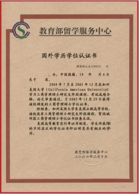 考生须上传:教育部留学服务中心出具的《国外学历学位认证书》。