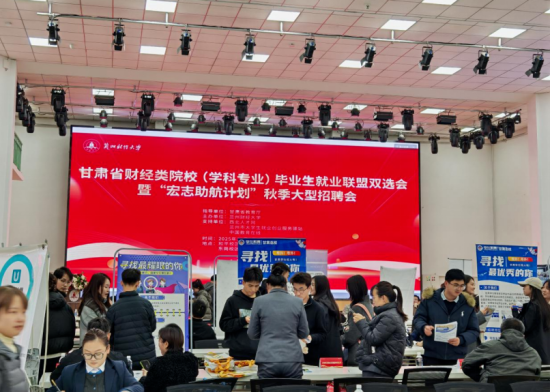 11月7日下午,甘肃省财经类院校(学科专业)毕业生就业联盟双选会暨“宏志助航计划”秋季大型招聘会在兰州财经大学成功举行。此次活动得到了甘肃省教育厅的指导,以及西北人才网、兰州市大学生就业创业服务驿站和中国教育在线的大力支持。