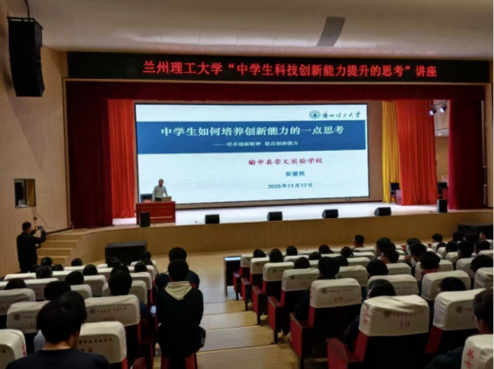 为持续推进高中与高校之间的教育交流,拓展学生学术视野,激发青年学子的创新意识,2025年11月17日下午,安爱民教授应邀前往榆中县崇文学校,开展题为“中学生如何培养创新能力的一点思考”的专题讲座。崇文学校高中部600余名学生现场聆听讲座。