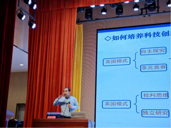 安爱民教授从创新思维的内涵出发,结合中学生认知特点与成长规律,系统阐述了创新能力培养的重要意义与现实路径。讲座中,他通过生动案例、互动提问与思维引导,启发学生从日常生活中发现问题、探索解决方案,鼓励大家在实践中锻炼独立思考能力与应用能力。现场学生积极参与,反响热烈。