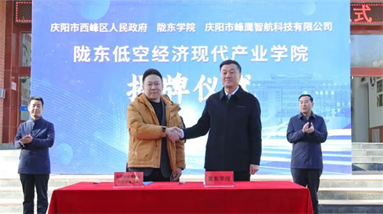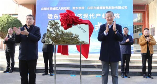 仪式上,吴宝定与任尔昕共同为“陇东低空经济现代产业学院”揭牌。
