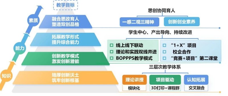面向机械类专业的《反求工程与快速成型技术》,立足“新工科”建设背景,坚守“价值引领,学生中心,赛教融合,持续改进”的教学理念。课程发挥学科交叉优势,创新打造“3D打印+课程群”体系与“1+X”项目式教学模式,将理论知识、实践操作与学科竞赛深度绑定,全面提升学生的创新思维、实践能力与跨学科素养。此前已获评甘肃省一流本科课程、省级创新创业教育示范课程、省级课程思政示范课程的该课程,此次跻身国家级行列,是对其教学质量与育人价值的权威认证。