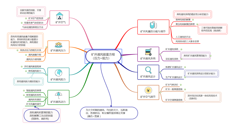 作为安全工程专业的核心课程,《矿井通风与安全》在省级一流课程建设基础上持续升级,立足学生学情构建“基础理论+职业能力+综合应用”三级课程体系。课程践行OBE理念与“产学结合、学以致用”原则,创新采用翻转课堂、自主探究等教学方法,通过课内多通道学习路径与灵活考评方式,搭配课外学科竞赛、创新创业项目延伸学习链条。教学过程中,课程聚焦矿井通风系统设计、有毒有害气体防治、通风阻力测定等核心技能,融入智能通风、三维可视化风网解算等前沿技术,注重学生差异化与个性化培养,着力提升学生解决现场复杂工程问题的能力,为矿山安全领域输送复合型技术人才。