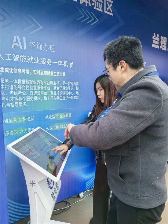 尽管活动当天阴雨连绵,但智能设备的创新性和实用性仍吸引了大量学生踊跃体验。现场不少毕业生反馈,AI就业指导系统操作简便、反馈及时,不仅帮助优化了个人简历,更通过科学的职业测评明确了发展方向,有效提升了求职竞争力。