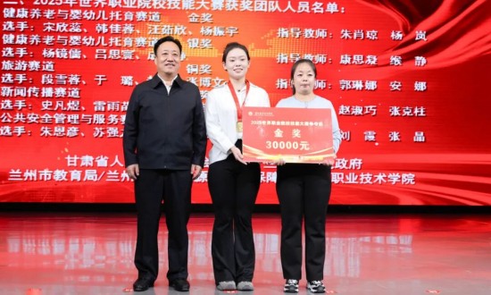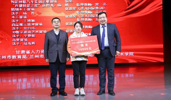 甘肃省人力资源和社会保障厅党组成员、副厅长何永强,兰州市人民政府党组成员、副市长刘凤恒,兰州市人力资源和社会保障局党组书记、局长李灵祥,兰州市教育局副局长赵虎及学院党委书记毛玉铎,党委副书记、院长谢军武参加会议,并为获奖师生颁奖。