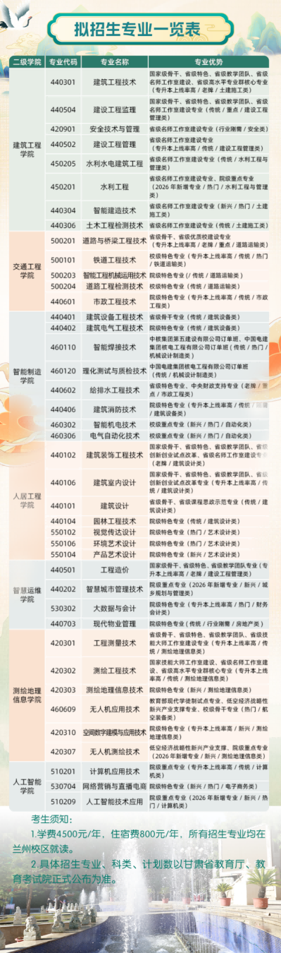 甘肃建筑职业技术学院2026年招生简章