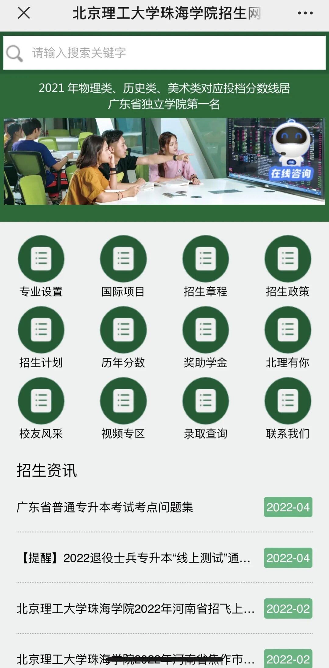 获取北理珠的招生信息和校园资讯