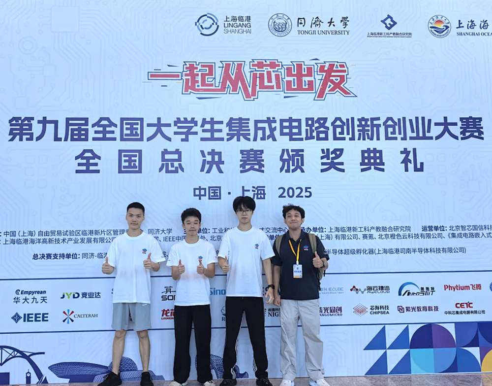 在物资与经费方面,深大电子与信息工程学院也给予了切实的帮助,提供了耗材报销与差旅经费支持,使团队能心无旁骛地投入到实验与系统搭建中。而贯穿整个备赛过程的,还有学院导师们的倾力指导。“项目驱动+自主探索”培养模式下,导师从不直接给出答案,而是一步步引导团队成员自主尝试、查阅资料、调试优化。久而久之,他们不仅养成了独立解决问题和动手的能力,更学会了如何快速定位问题并找到解决路径。这份在竞赛中历练出的能力与品格,远比荣誉本身更为珍贵。