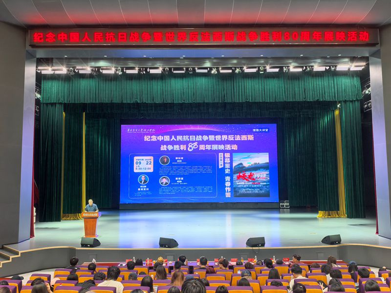 在纪念中国人民抗日战争暨世界反法西斯战争胜利80周年之际,9月22日,华南农业大学珠江学院在珠江剧院成功举办“银幕鉴史 青春作答”主题展映活动。本次活动创新融合专题报告、红色影片展映与映后交流,为师生带来一场沉浸式的爱国主义教育体验,引领青年一代在光影艺术中传承红色基因,汲取奋进力量。活动由中国电影艺术研究中心研究员、《当代电影》杂志主编皇甫宜川主持。