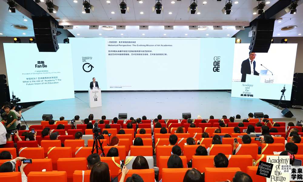 人工智能的浪潮奔涌向前,产业形态经历着深刻变革,知识的疆界以前所未有的速度开放融合。艺术教育如何超越传统的“象牙塔”模式,回应社会发展的核心命题,成为与社会同频、与公众共鸣的开放性实践,培养具备开阔的视野、融通的思维、综合的审美,开创美好未来的创造者,已成为全球高等教育界共同面对的重大课题。正是基于对这一时代命题的深刻洞察与主动回应,广州美术学院在启动以“大通识”为重点的本科人才培养综合改革一周年之际,精心策划“”未来学院”通识教育改革系列活动,以一种新的“未来主义”的勇气直面时代挑战的选择。回溯学院,作为一种古老的社会机构,联系起来的是雅典学院和稷下学宫那种兼容并蓄、打破时空界限、整合不同学科领域的理念,而“未来”则是对于学院的当下展望,以一种新的全球化视野的跨域激荡,推进传统学院教育的创新创造。