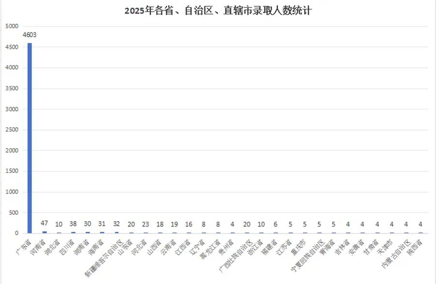 生源覆盖全国29个省(自治区、直辖市)、21个民族。广东本地生源4603人,省外生源388人,河南、四川、新疆是省外生源最多的三个省份。