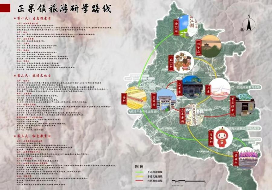 走遍每一个角落,用心聆听每一段历史,实践队精心绘制出精美的旅游研学路线地图,通过设计3条主题鲜明的旅游路线“生态自然篇”、“非遗传承篇”和“红色记忆篇”,不仅标注出各个生态景观和非遗体验,如白江湖森林公园、岳村小火车、兰溪荔枝园、畲族民俗馆等,充分展示以课程导向、旅游体验为核心,深化当地文旅资源高质量发展。