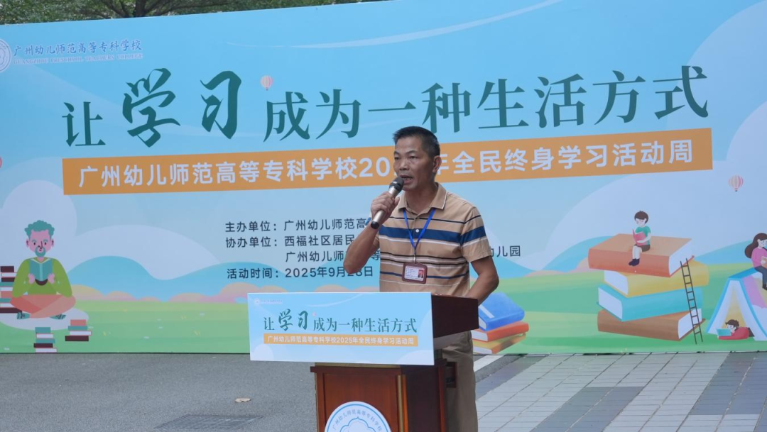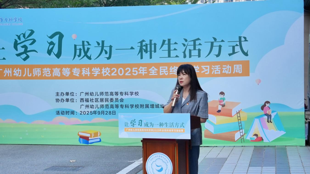 为贯彻落实《广东省教育厅等六部门关于举办2025年全民终身学习活动周的通知》精神,9月28日,广州幼儿师范高等专科学校结合办学定位和发展特色,在朱村街西福社区及广州幼儿师范高等专科学校附属幼儿园开展“让学习成为一种生活方式——广州幼儿师范高等专科学校2025年全民终身学习活动周”系列活动,推动全民终身学习活动的深入开展。