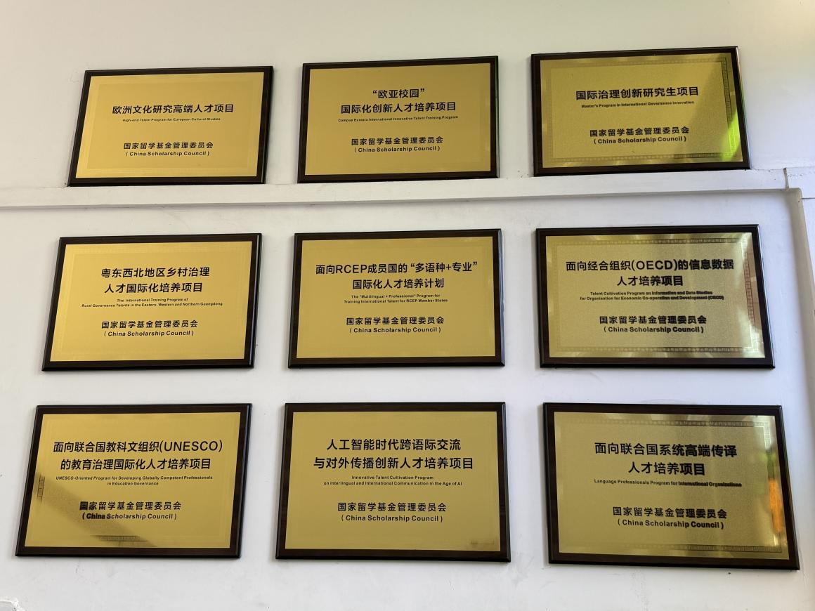 广外搭建“5+1+多”的高水平研究生国际化平台,包括5个国家留基委在建的国际化人才培养项目,1项广东省粤港澳联合培养项目和“多语种”人才培养项目。其中,“国际治理创新研究生项目”“面向经合组织(OECD)的信息数据人才培养项目”“面向联合国系统高端传译人才培养项目”“面向联合国教科文组织(UNESCO)的教育治理国际化人才培养项目”属于国际组织后备人才培养项目,“人工智能时代跨语际交流与对外传播创新人才培养”属于创新型国际化人才培养项目,“欧洲文化研究高端人才项目”属于国别区域研究人才支持计划项目,“粤东西北地区乡村治理人才国际化培养”属于乡村振兴人才培养专项。