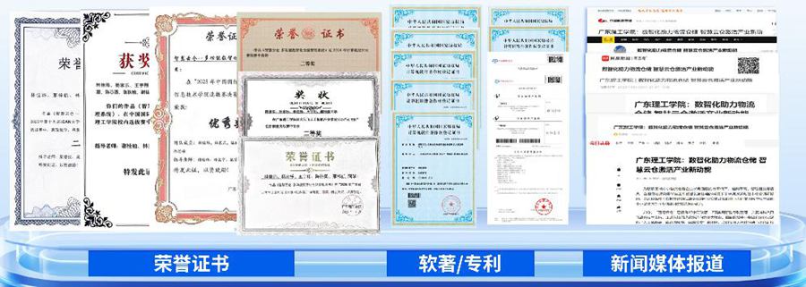 凭借“文科思维赋能产业升级”特色,“智慧云仓”已获10余项软著、2项新型专利,拿过2024年广东省大学生计算机设计大赛三等奖,有2025年广东省创新创业立项省级项目,还在各级校院赛事获奖十余项。此次在2025年广东理工学院大学生新文科实践创新大赛总决赛,斩获金奖。在数字经济新基建的浪潮下,团队以科技赋能现代物流升级,引发行业7家媒体的广泛聚焦,同时成功晋级省赛,再创佳绩!其作为新文科理念与物流产业结合的典型成果,研发全程贯穿文科实践核心。